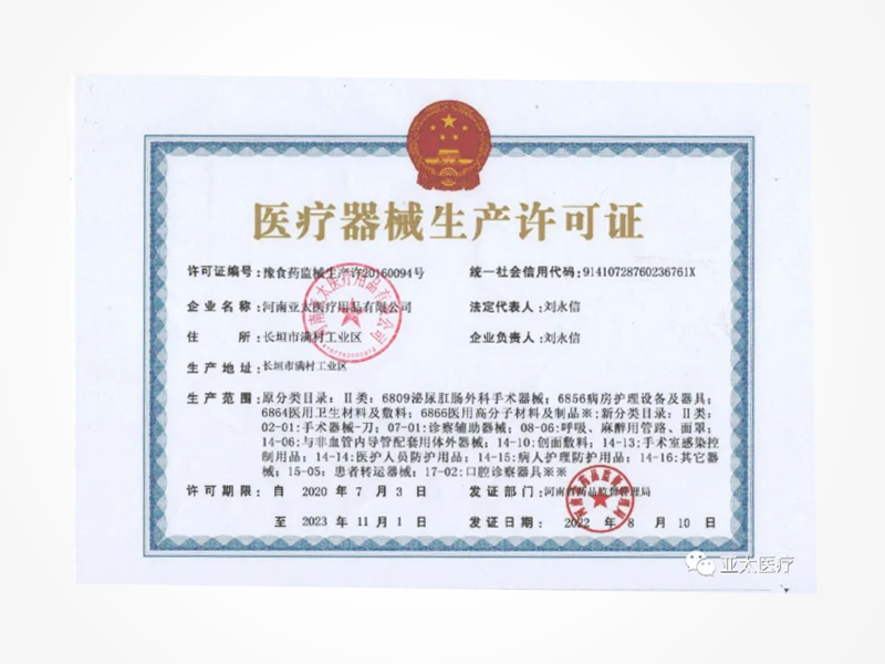 醫(yī)療器械生產(chǎn)許可證